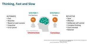 The late Nobel Prize winner and economist Daniel Kahneman identified two systems in the human mind: System 1 and System 2. System 1 operates automatically and quickly, allowing our stereotypes and past experiences to create automatic associations and judgments. Unconscious biases often reside in System 1. Conversely, System 2 is slower and more deliberate. By engaging System 2, we can consciously evaluate our language choices and adopt more inclusive terms.